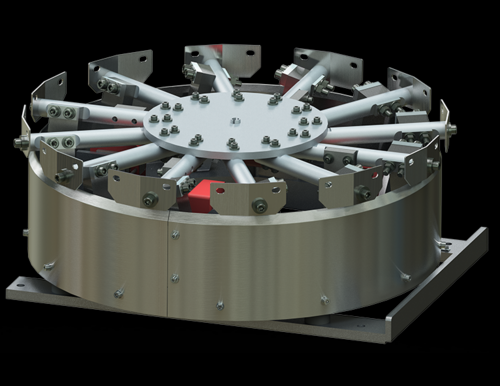 Der SRC-N 800 ist der größte Rundantrieb im RNA-Programm und speziell für große, schwere Sortiertöpfe konzipiert. Vier Hochleistungsmagnete und zwölf individuell konfigurierbare Blattfederpakete sorgen für eine nahezu beladungsunabhängige, prozesssichere Laufleistung mit hohen Amplituden. Die Töpfe werden stabil an 12 radialen außenliegenden Befestigungspunkten montiert.
